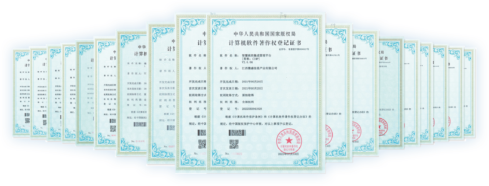 微盛软件在过去十六年的疾控信息化建设中,凭借卓越的业绩获得了多项企业荣誉和认可,被授予江西省计算机用户协会理事单位、江西省软件行业协会会员单位等等,很多软件系统也获得了华为技术认证,目前已经开发了62个公共卫生领域信息化平台的软件,其中40个已取得软件著作权,包括智慧疾控集成平台、免疫规划信息平台、突发公共卫生应急疾控作业平台、全员核酸检测信息平台、一体化体检信息平台、妇幼智慧医院、大数据可视化平台、区域医疗一体化平台等等,还有22个软件正在申请软件著作权。